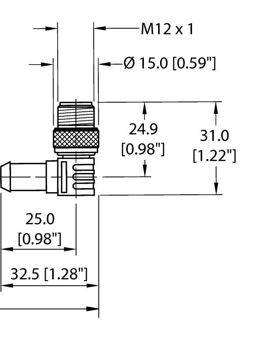 Order number: U2465- M12 female connector, right angle, 4-pin