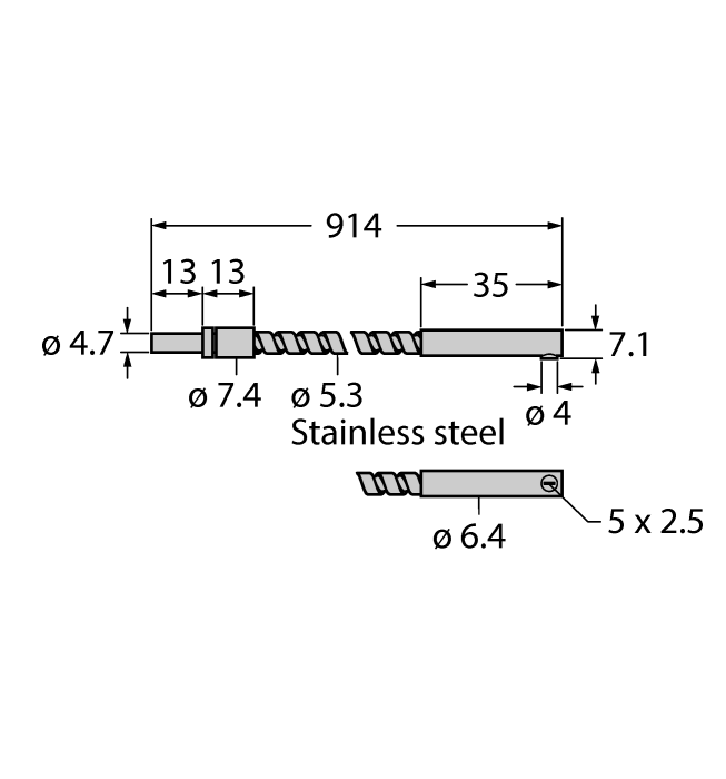 • End sleeve for sensor: Stainless steel, angled (90 °), rectangular beam exit
