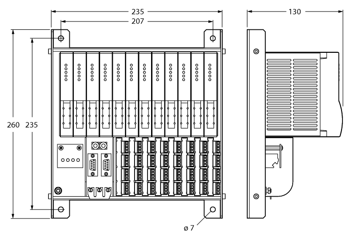 Order number: 9100680- Module rack for max. 8 I/O modules, 2 gateways and 2 power supply modules