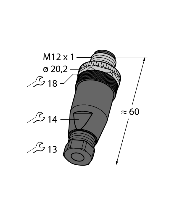 Male Connector M12 × 1, Straight