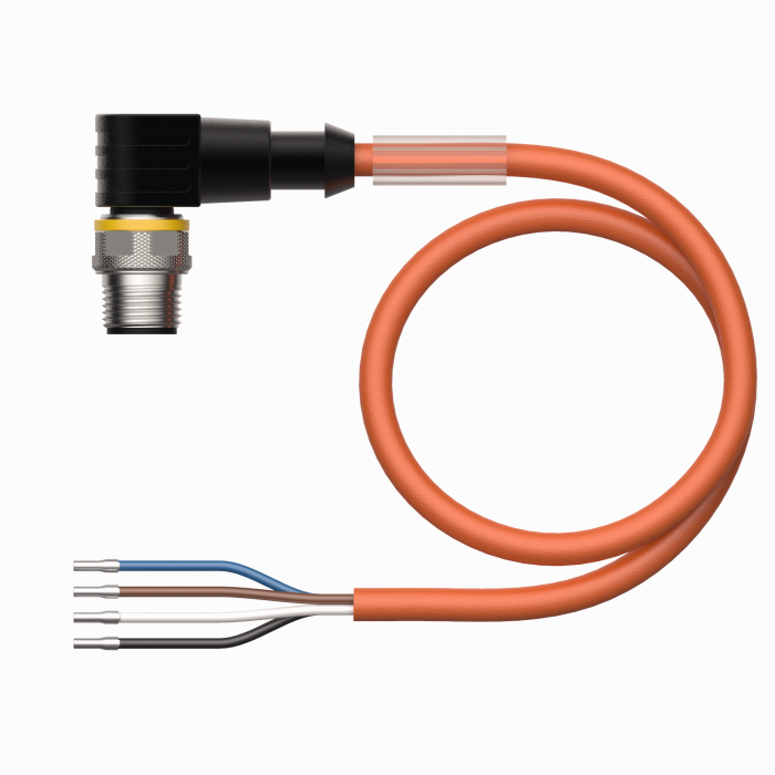 Power supply cable, 7/8” connector, straight, 4-pin to 7/8” female connector, straight, 4-pin, cable length: 2 m, jacket material: PVC, yellow; other cable lengths and qualities available, see www.turck.com |